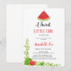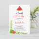 This cute "a sweet little girl is on her way" girl's baby shower invitation features a white background with watermelons and green leaves in watercolor. The reverse side features a white background with watermelon and pink stripe patterns.