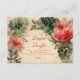 This baby shower design showcases a lush vintage garden illustration with ripe watermelon accents, soft florals, and leafy greenery on a warm parchment background. The composition feels fresh yet nostalgic, blending old-world botanical charm with a playful summer fruit theme.
