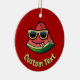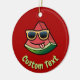 Cute cartoon. Watermelon slice with sunglasses. Custom background colour. Custom text on both sides.