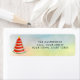 This return address label is decorated with a red watermelon Christmas tree on a colourful watercolor background.