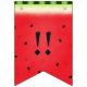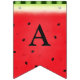 Write your custom text on delicious bright red watermelon large pennants with black seeds, white rind and green striped skin.