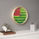 Red and green watermelon flag with stripes and seeds. Custom text.