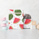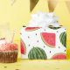 Fun watermelon pattern wrapping paper featuring watermelon slices and in shapes of a heart.