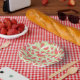 Mid-century inspired design with a retro touch featuring stylised pieces of watermelon on a pale green background. A customisable design for you to personalise with your own text, images and ideas. An original digital art image created by QuirkyChic.