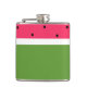 The flask itself is fine. It’s a cheap flask, obviously bought in bulk, however am prepared to overlook that. Given that it is a personalized item, I would have liked to have seen gift boxing instead of the generic packaging. Terrible printing, and/or quality. It’s a cheap, tacky vinyl. It is not cut straight and is also applied in a way that it is overhanging the bottom, causing the glue to catch on items and it will eventually roll and tear, damaging the wrap.