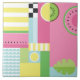 Colourful summer fruit design, watermelon, kiwi pink, green, yellow, blue, bright colours pop art