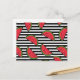Watermelon on Black & White Stripes Pattern Postcard