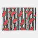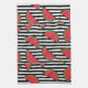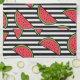 Watermelon on Black & White Stripes Pattern Tea Towel