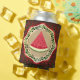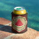 watermelon on olive plate with Palestinian tatreez Can Cooler