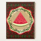 In this vibrant and evocative piece of art, the artist masterfully blends elements of culture and symbolism to communicate unwavering support for the people of Gaza. The composition is a visual testament to the resilience, heritage, and hope that persists despite challenges. delivers a powerful message of support and solidarity for Gaza, beautifully blending symbolism and vibrant colours. At the centre of the composition A slice of watermelon on an olive plate with a Palestinian red and green embroidered traditional Palestinian patterns background. This design is For everyone who supports freedom and justice and fights injustice. To all supporters of the just Palestinian cause. Rise and support the liberation of Palestine and Gaza and the establishment of peace in Jerusalem. Designed by Peace Lover designers. Stop the Palestine-Israel conflict. Palestinian lives matter.