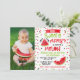 Looking for a red watermelon or one in a melon photo birthday invitation? This design may be what you are looking for. The design includes various decorative elements like confetti and two slices of watermelon on a white background. Some of the text is not editable and has a watercolor wash. For more designs in this theme please visit the store. This photo one in a melon or watermelon girl's birthday invitation is ready to be personalized. Same design is also available without a photograph and in pink.