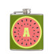 Design with a retro touch inspired by a watermelon featuring a pink circle and seed pattern on a dark green background. A customisable design for you to personalise with your own text, images and ideas. An original digital art image.