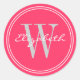 Watermelon Pink Round Name Monogram Envelope Seals, Favour Tags, Stickers