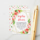 This fun and whimsical display baby shower card features watercolor watermelon, pomegranate, strawberries, cherries and foliage on a gold geometric frame. The text combines handwritten script and serif fonts for a stylish and modern look. This is perfect for a summer rustic baby shower.