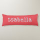 Bring extra colour and comfort to your relaxation space, with this custom body pillow. The huggable pillow can be personalised with your name, in white modern lettering, on a watermelon red background. The design is on both sides of the pillow. An ideal gift for all ages, to add a pop of colourful style to your decor.