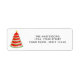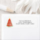 This return address label is decorated with a red watercolor watermelon Christmas tree.