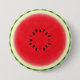 This coaster is a juicy watermelon slice with rind, seeds, and seed holes. A sliver of striped skin is visible on the edge.