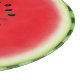 Enjoy a juicy watermelon slice with rind, seeds, seed holes and a sliver of striped skin on the edge.