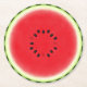 This coaster is a juicy watermelon slice with rind, seeds, and seed holes. A sliver of striped skin is visible on the edge.