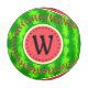 This pretty watermelon monogram baseball design has a round fruit that looks like it's been sliced, so the juicy pink-red flesh of the melon shows through, along with a circle of black watermelon seeds. The berry also has a speckled green, mottled rind pattern.