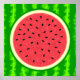 This pretty watermelon design has a round fruit that looks like it's been sliced, so the juicy pink-red flesh of the melon shows through, along with plenty of black watermelon seeds. The berry also has a speckled green, mottled rind. This is a cute, whimsical summertime design.