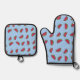 Watermelon slices on blue oven mitt & pot holder set