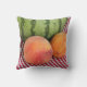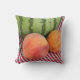 Farm fresh peaches and juicy ripe watermelon set against a gingham tablecloth.