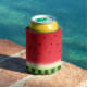 Get in the mood for summer and active days with this refreshing watermelon can cooler design. With bright red flesh, black seeds, white rind and striped skin, this quirky and realistic watermelon design adds a an extra element of fun to family gatherings, kids activities, and everyday drinks.
