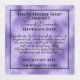 A label for bath and body care products featuring a faux purple foil background and black text.