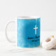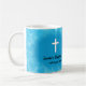 Baptism souvenir mug with "Waters of Baptism" design for a memento of that special day. Customizable. Simple Baptism design of cross and water.