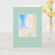 This soft watercolor card features a woman lost in thought, and says, “Dreaming of you…” On the inside, “…in a forest of evergreens, by a glistening stream, your arms around me. Everything but this moment and place falls away. It’s just you and me…. I miss you! Come home safely!” To a spouse or partner, a soldier or someone working for the military stationed far away, or someone who, for whatever reason, is far away.