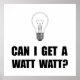 Power company electricians, scientists, electrical engineers and lighting store owners joke can I get a watt watt? Check out this funny custom design on tees, shirts, mugs, cases, gifts and apparel.