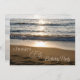 65th birthday party invitation card featuring a beautiful photo of the waves crashing on the beach at sunset. Customisable with your party details.