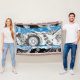 The Wave Mechanism – Custom Throw Blanket brings abstract art into cozy comfort. Symmetrical circular motifs evoke gears in motion, while the bold blue wave band flows across the center, balancing structure with fluidity.