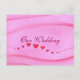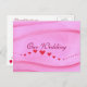 Painting of different size hearts in red, on a blended pink background, is printed on custom wedding invitation postcards. The text can be easily customised on the template forms.