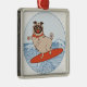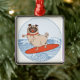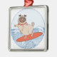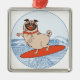 Wave riding happy pug dog on surfboard metal ornament