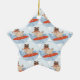 Wave riding happy pug dog on surfboard scarf band ceramic ornament