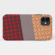This phone case has a mid-century modern design of orange wavy lines on a gold background, red circles on a brown background, and a grey background. If you want the same design with different colours, message me.