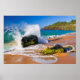 Surf crashing on rocks at Secret Beach (Kauapea Beach), Kilauea Lighthouse visible, Kauai, Hawaii | Russ Bishop / DanitaDelimont.com
