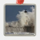 Waves Crashing Up Against A Lighthouse Metal Ornament