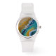 I only have one complaint. I ordered the watch with clear case and strap, and what was sent was white case and strap. I'm going to keep it because 1) it looks very nice in white, and 2) it would take too long to get a replacement made and sent in time for my occasion. Aside from the mix up with the color, the watch does look very good in white. The purple dial is actually sparkly which did not show in the online images. That was a nice surprise. If you like Swatch watches this is very similar to those. It's 33.6mm in diameter, 10.5mm thick, and 40.6mm lug to lug. Stainless steel case back says 3ATM/30m WR, so no swimming or showering or submerging this one. If you like Woodstock, this is a great choice.