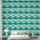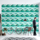 Ideal for any beachy establishment; coastal restaurant; seaside hotels; lodges; resorts and chalets, this turquoise and pale blue mixed with black and white mural features horizontal rolling Japanese style ocean waves. Bring the beach indoors, with this modern, contemporary and elegant seamless pattern that is easy to peel and stick to both smooth and textured walls.
