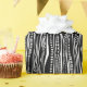 A retro black and white pattern reminiscent of old book end paper makes an elegant wrapping paper suitable for any occasion.