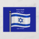 The waving flag of Israel with the Israel written in English, Hebrew and Arabic.