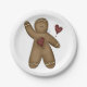 Waving Gingerbread Man with Polka Dot Hearts Paper Plate