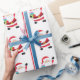 This gift wrap features a jolly Santa, waving his arm and grasping a wrapped gift in the other. Perfect for your Christmas gift giving.