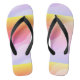 The perfect colourful flip flops for women who enjoy abstract art inspired designs. This pair of flip flops is bright coloured and has wavy lines and abstract shapes.