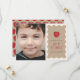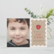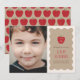 Celebrate your child's preschool graduation with this modern, charming graduation announcement. The front of the card features a sweet, halftone apple illustration with a "Class of (Year)" text overlay. Beneath the illustration is the message "the apple of our eye", as well as space for the name of your child and their school. The text and design is placed over a faux kraft background, with a playful, beige wavy frame border. This announcement also includes space for a large customer photo. The back of the card features a coordinating halftone apple pattern.