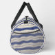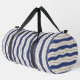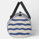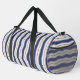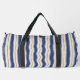 A classic with a twist, breezy and fresh, the original artwork by ZoeSPEAK on this Duffel Bag is an overall pattern of dark blue and canvas white stripes, some wide and some thin. In the centre of the design, the stripes are wavy, rippled like water, giving the fabric an already "rumpled" look.