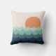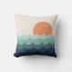 Wavy blue ocean at sunset cushion
